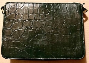 LW VINTAGE 70ER JAHRE SCHWARZ SCHULTERTASCHE HANDTASCHE KROKODILDESIGN MIT GOLDRIEMEN
