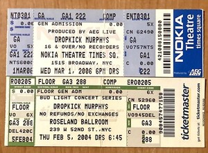 DROPKICK MURPHYS 2 TICKET STUB LOT 04/06 2/5/2004 & 3/1/2006 ROSELAND NOKIA NYC CHF 18,89Bisher: CHF 19,89
