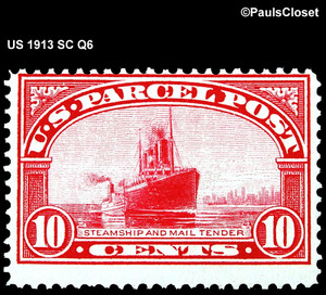 USA 1913 SC Q6 PAKETPOST STEAMSHIP & MAIL TENDER 10¢ CARMINE ROSE MHR P12 FINE