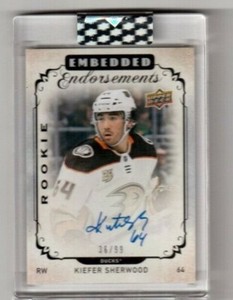 2018-19 Clear Cut Hockey Embedded Endorsements Rookie Kiefer Sherwood Ducks /99