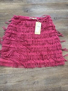 Let Me Be Anthropologie Fransen-Minirock seitlicher Reißverschluss hohe Taille rosa XxS