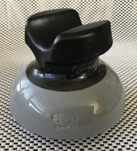 GROSSER VINTAGE SCHWARZ / GRAU PORZELLAN ISOLATOR ~ OHIO MESSING ~ SATTELPLATTE ~ SBT 4-79