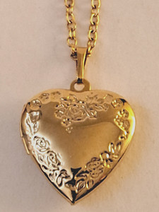 Goldtone Floral Embossed Heart Locket for 2 Photos with 18" Chain