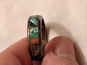 Zuni Sterling Silber Ring von A. Halote mit Türkis-Koralle-Onyx-Abalone Größe 6,5