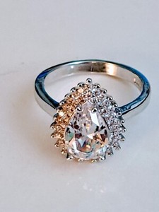 Teardrop Shaped 925 Silver Moissanite Ring Size 9.5