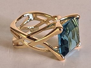 Goldgefüllter blauer Zirkonia Edelstein Ring, Größe 7