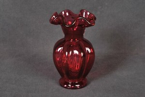 Fenton Cranberry Klarglas geraffter Rand gerippte Vase 5-1/4" hoch