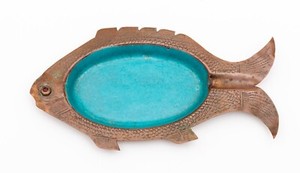 Vintage Chinesischer Fisch Aschenbecher aus Messing und Emaille