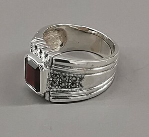9927865 925er Silver Granat-Markasit-Ring Gr.56 Vintage