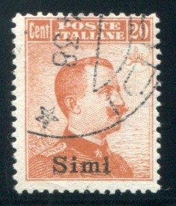 1917 Egeo Simi 20 cent. senza filigrana usato spl