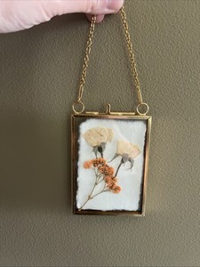 Trockenblumen im Goldrahmen, echt, süß, original, Miniatur klein, mini, gerahmt