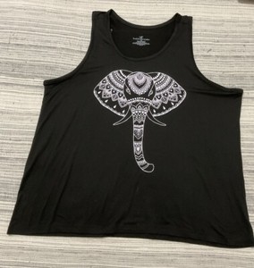 Bobbie Brooks schwarzes Tanktop Mandela-Stil weiß Elefantenmuster Größe 2X gebraucht, in einwandfreiem Zustand Poly/Cotto CHF 7,51