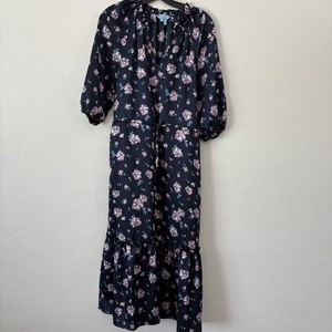 Draper James Kleid Damen Gr. M Blau Blumen Midi Martina Popover Rüschen Bescheiden