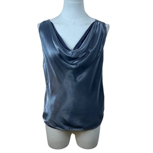 Dusan Damen grau 100 % Seide ärmellos drapierter Ausschnitt Bluse Größe L