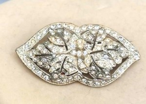 Vintage Brosche silberfarben & Strass - groß Art Deco