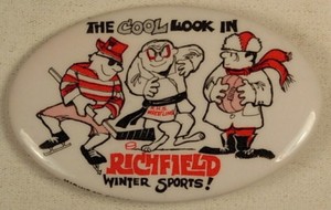 RICHFIELD MN HIGH SCHOOL WINTERSPORT PINBACK BUTTON PIN 60er JAHRE