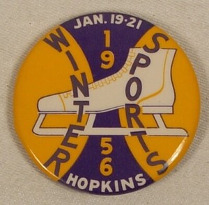HOPKINS MINNESOTA WINTER SPORTS 1956 PINBACK PIN BUTTON SKATE BILD