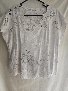 Novica weiß Cut-Out Spitze T-Shirt Top Bluse bestickt weich cool Viskose Large