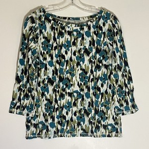Madison Organics Top Damen mittelblau Blumen Strick Stretch 3/4 Arm Freizeit M