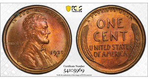 1920-D Lincoln Cent, PCGS MS65 RB, tiefrote und braune Farbtöne.