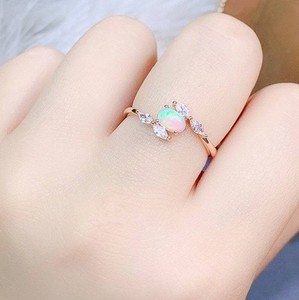 Natürlicher äthiopischer Opal Edelstein Damenring 14 Karat Rosévergoldet Silberring