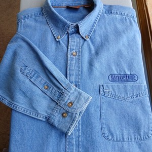 Harriton Langarm leichtes Jeanshemd Herren 2XL Baumwolle Arbeit Unified Grocers