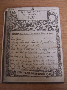 Military Airgraph Christmas 1944 SGMN William Roe 5887621 1 Coy IAFS CHF 10,710 Gebote5T 18Std 20 Min