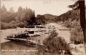 1946, Strandszene, Kanus, Rio Nido, Kalifornien Echtfoto Postkarte