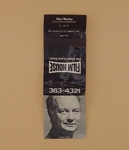 Vintage Match Cover, FILM HOUSE, Ron Morby, Prod. Control Supervisor - Empty, #1