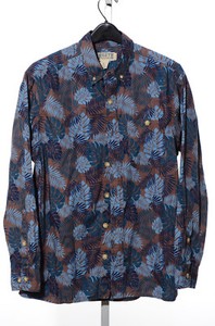 Duluth Trading Relaxed Fit Blue Brown Tropical Leaf Print Long-Sleeved Shirt M