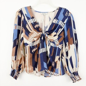 Neu ohne Etikett Ranna Gill geometrisches abstraktes Leinentop Größe S Langarm Metall Ringausschnitt CHF 40,25