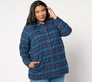 Joan Rivers Classics Collection Petite Cotton Plaid Flannel Snap Front Shirt Ivo CHF 23,94UVP CHF 42,29