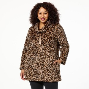 Hue Plüsch Kuschelige Wasserfallausschnitt Liege Tops Natur Leopard S Neu