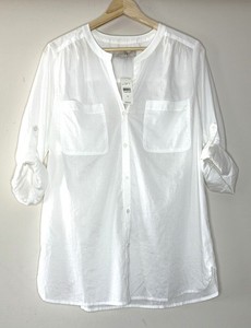 Neu Ann Taylor Loft Damen M Bluse Knopfleiste weiß Baumwolle leicht