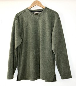 L.L. Bean Pullover Herren Gr. M Grün V-Ausschnitt Fleece Sweatshirt Langarm