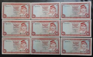 9 Brunei $10 Ten dollars ringgit banknotes 1986 1983, Sultan Bolkiah Wholesale