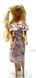 MATTEL BARBIE Doll Blonde Hair Floral Dress Articulated Elbows Knees 12" Tall
