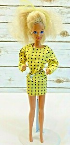 MATTEL BARBIE Blonde Hair Blue Eyes Yellow Polka Dot Dress 12" Tall Free Ship