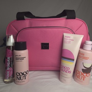 Victoria's Secret Pink Set mit rosa Travelers Clubtasche. Lotion, Duft + mehr