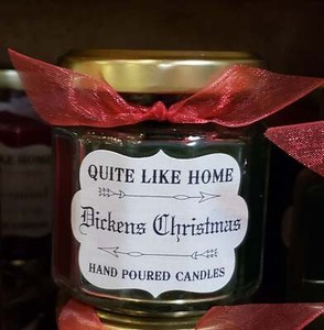 Dickens Weihnachtsduft 4 Unzen Glaskerze mit Golddeckel, & Organzaband.