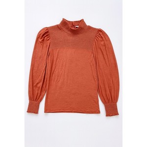 Nation LTD Damen Zahara Top gesmoktes Langarm-Bluse mit Stehkragen korallefarben - Größe S