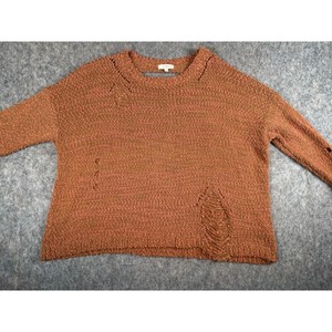 Umgee Pullover Damen Gr. 1XL Orange Braun Used Rundhals Grunge Y2k