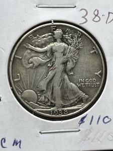 Silbermünze Half Dollar 1938 D fein geringe Auflage 491.600 geprägt! Walking Liberty