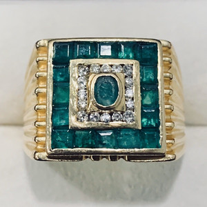 Ring 0,15 kt 14 kt Gelbgold runder natürlicher Smaragd & Diamant grüne Blume Größe 7