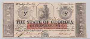 1862 5 $ State of Georgia, Milledgeville veralteter Schein - nicht bewertet
