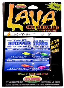 K & E Eisstopfen LAVA Hot Glo Köder Größe 8 leuchtende Vorrichtung vier Farben Set