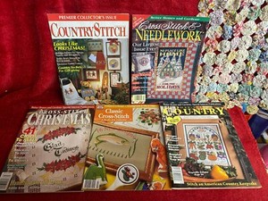 Lot of 6 Cross Stitch & Country Crafts Magazines 1990 Many Patterns & Projects
