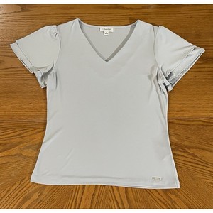Calvin Klein Bluse Oberteil grau seidig V-Ausschnitt doppelte kurze Ärmel Damengröße S gebraucht, in einwandfreiem Zustand