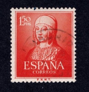 Spanien Briefmarke #283b, gebraucht, blaugrün (Fehler), SCV 1100,00 $