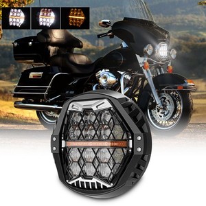 Chrome DOT 7" Round LED Headlight Hi-Lo Beam Amber DRL For Electra Glide Classic